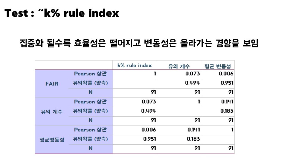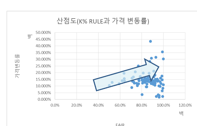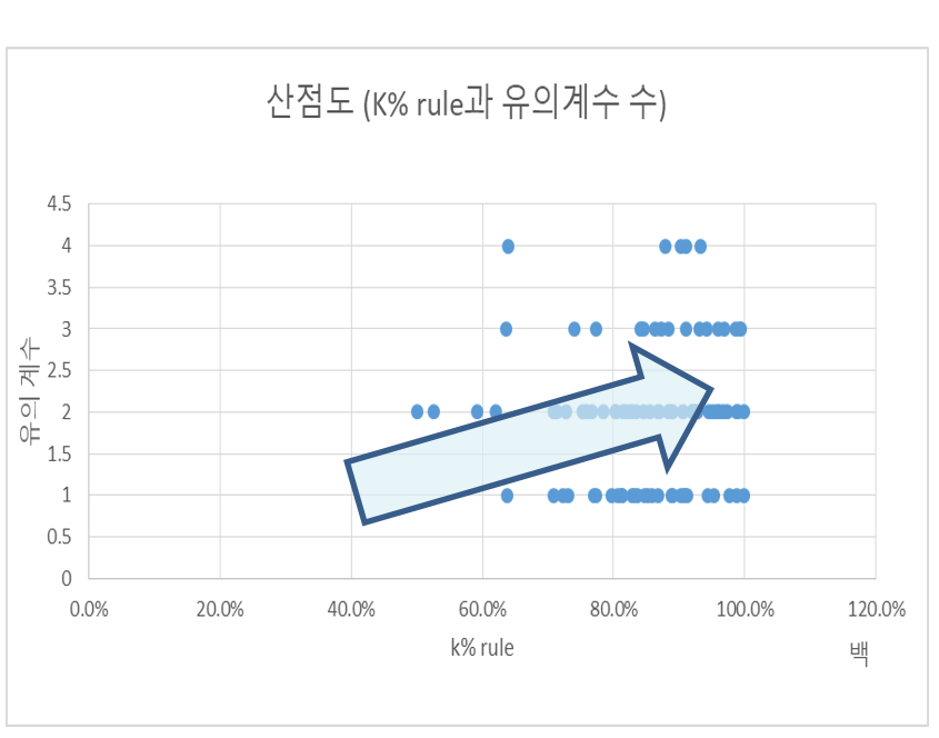 앞서 구한 K% RULE 지표와 유의적인 변수 계수를 구하고 그 관계를 살펴봤습니다.