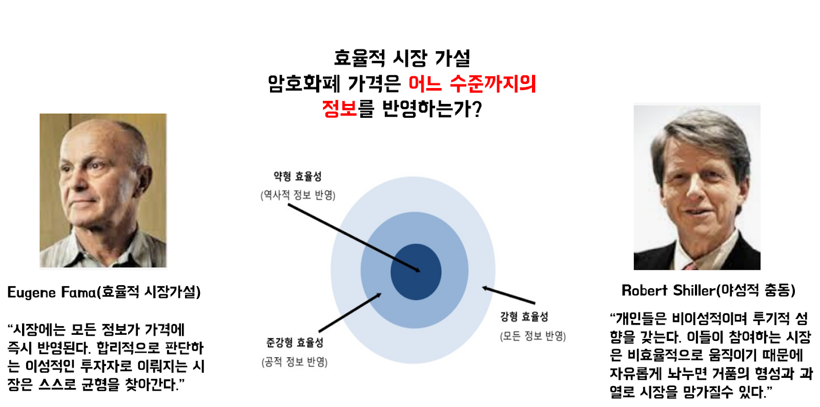 이에 대해서 같은 연도에 노벨 경제학상을 받은 Rober Shiller는 시장에 참여하는 개인들은 비이성적이고, 투기적이라고 보고 이들이 참여하는 시장은 비효율적으로 보고 있습니다.