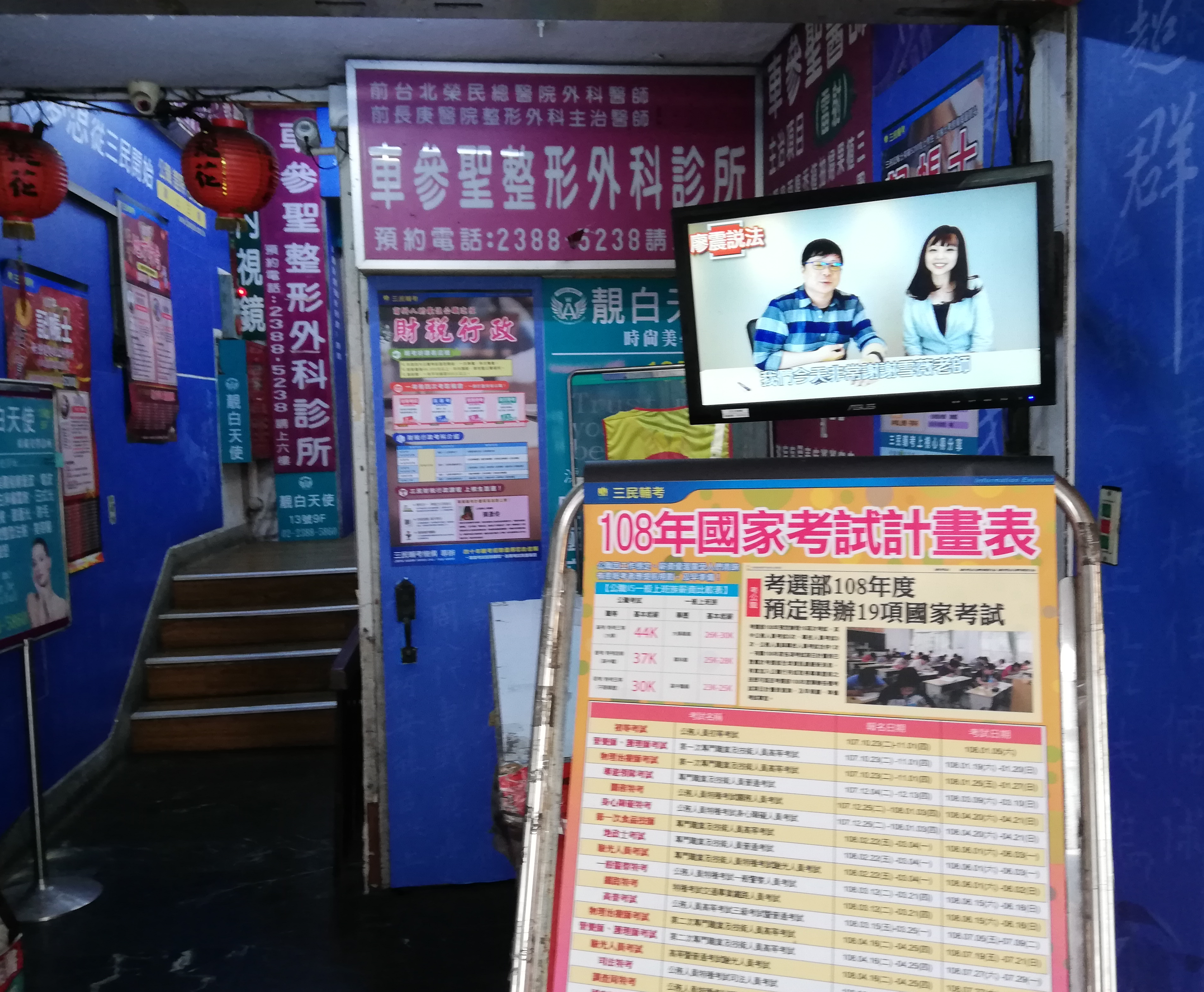 서점에서 사진찍지말자는 경고문구는 없지만, 너무 찍으면 주변에 민폐가 될것 같아서 이만 나왔습니다. 바로 앞에 학원이 보였습니다. 늦은 시간까지 공부하느라 고생하는 수험생분들 좋은 결과 있기를 바랍니다. 실제 대만 수험생 분들이 많이 지나가시더군요. .