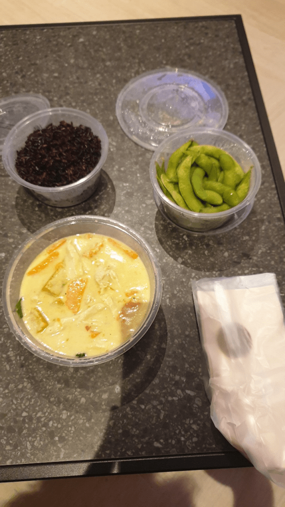 그린카레와 밥 그리고 찐 콩을 시켰는데 우리돈으로 약 9000원 정도 나왔습니다. 길거리에서 사먹는 거에 비해서는 2~2.5배 정도 비싸다고 볼 수 있습니다. 길거리에서 먹는 음식의 경우 40바트 짜리도 많은데, 배달 앱에서는 찾아보기 어렵습니다.