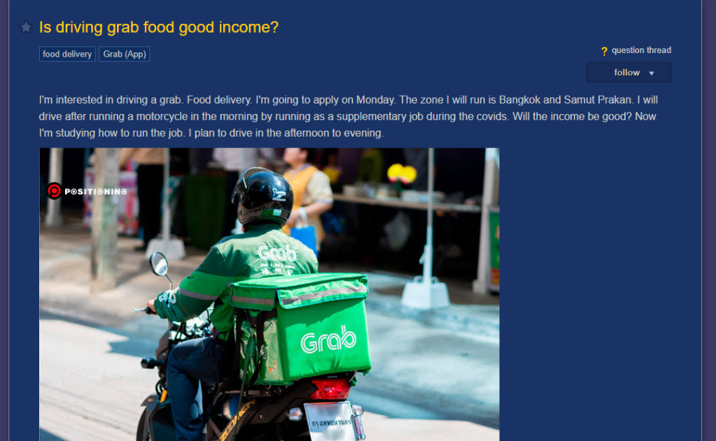 비슷한 내용의 글이 자주 올라오고 있는데요. 특히 2020년 이후에는 Grab 라이더로 일할 경우에 수입을 묻는 글이 자주 올라옵니다. 그만큼 일자리 문제가 심각하다는 이야기로 이해할 수 있습니다.
