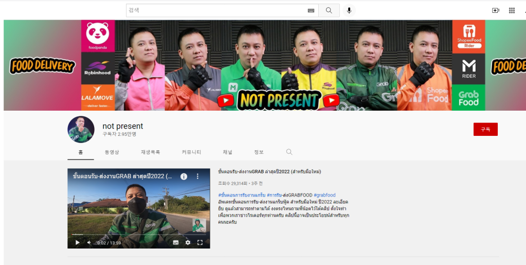 라이더의 생활은 어떠할까요? 여러 댓글에서 한 유튜버를 추천해주고 있군요. not present라는 분인데, 모든 플랫폼의 라이더로 활동하셨군요. 한번 채널에 들어가봤는데 각 플랫폼으로 일한 후기를 영상으로 올리셨습니다.
