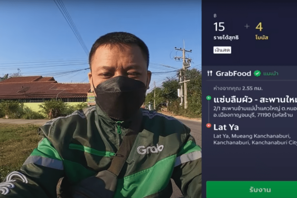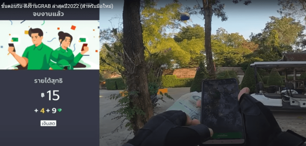 아래 영상을 보니 15바트의 기본 배달료와 거리에 따른 4바트의 추가 운임이 붙었습니다. 이 배달을 하면 19바트를 받는군요.