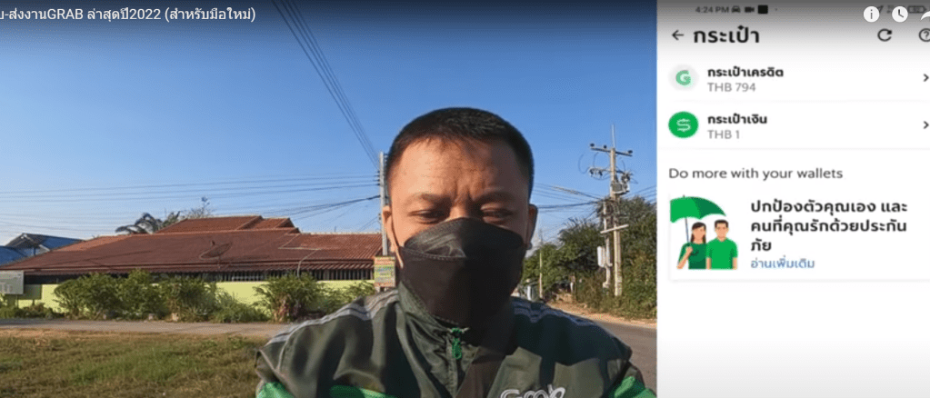 처음 영상을 시작할 때 지갑(Wallet)을 설정하는 모습이 나옵니다. 2개의 지갑(계좌)가 있는군요. 하나는 Grab 플랫폼 내에서 쓰이는 간편 결제인 Grab Pay인데 여기에는 794바트가 그리고 실제 돈이 들어 있는 계좌가 있는데 1바트만 있군요. 아마 라이더 인증하기 위해서 만들어 둔게 아닐까 생각해봅니다.