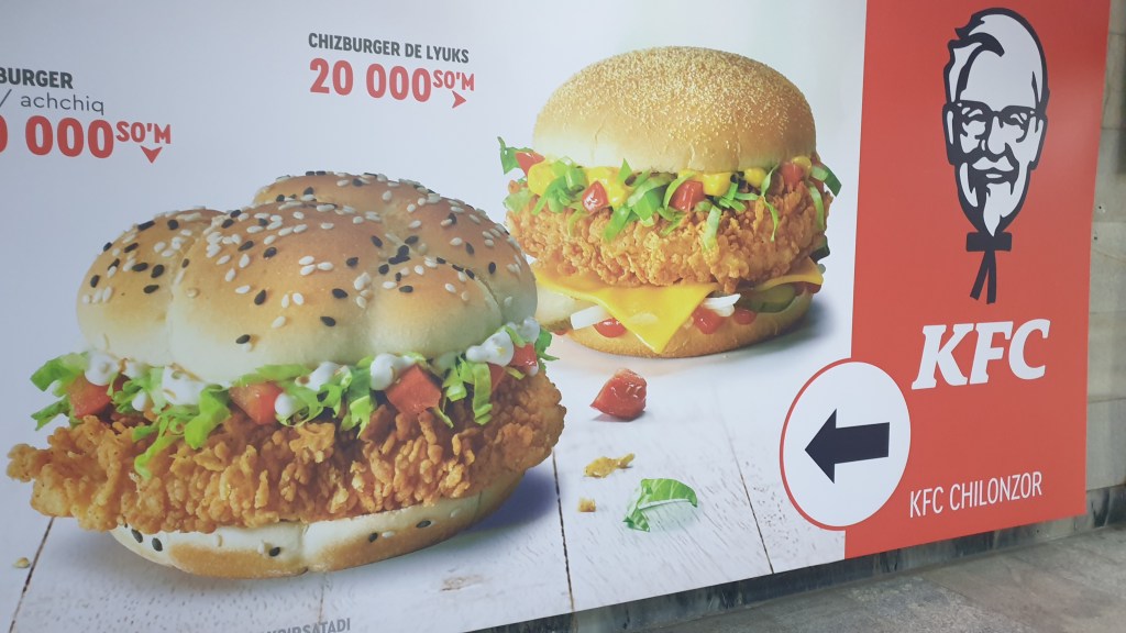 전통적으로 불특정 다수에게 “상품” “브랜드”를 노출 시키는 “간판광고”도 적절해 보입니다. 아래 [사진]에 보이는 KFC와 같은 패스트푸드가 대표적이라 할 수 있겠습니다. 일단 많은 잠재 고객에서 서비스를 노출시켜야 하기 때문에 사람들이 많이 모이는 곳에서 광고하는 것이 유리하겠죠?