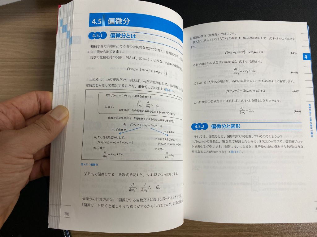 2. 기계학습 및 딥러닝에 사용하는 “수학”을 중요하게 다루고 있습니다. 대학교 교재가 아니지만, 편미분, 최적해 등을 설명하고 있는 분이 인상적입니다.