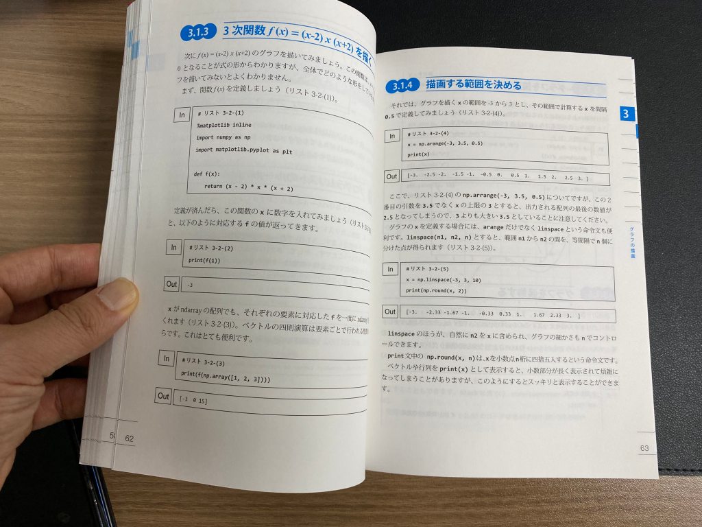 다섯 번째로 소개할 책은 “AI 수학 알고리즘”라는 책입니다. 앞의 책과 마찬가지로 이 책 또한 실습 할 수 있는 파이썬 코드를 제공하고 있습니다. 책이 꽤나 큰 편인데요. 마치 학습지 같은 인상을 줍니다.