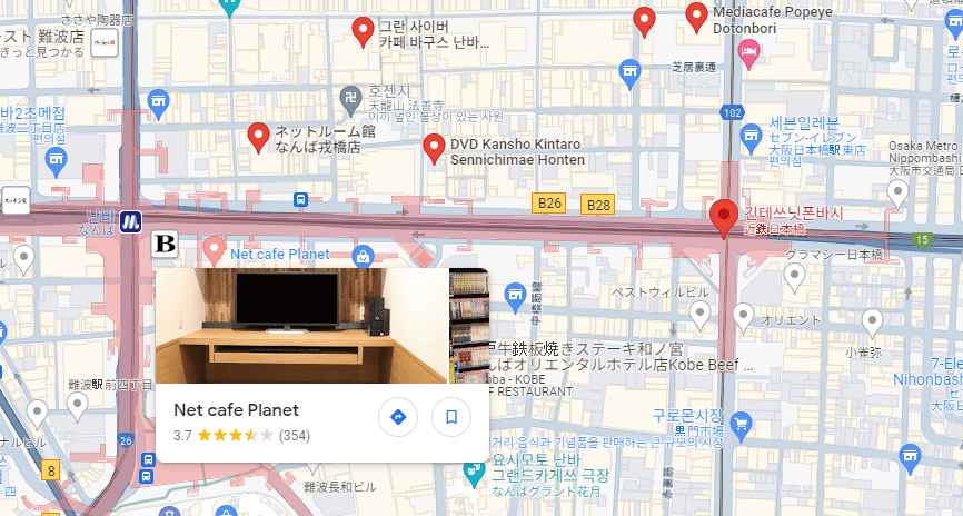 이번에 제가 간 일본 PC방입니다. 보통 “넷카페“라고 말합니다. 제가 간 곳은 비교적 지하철 역(미도스지선 “난바역” 18번 출구)에서 도보로 1분 거리에 있는 NetCafePlanet이라는 곳입니다.